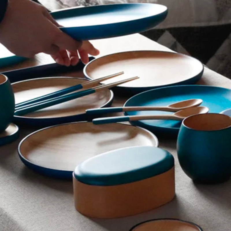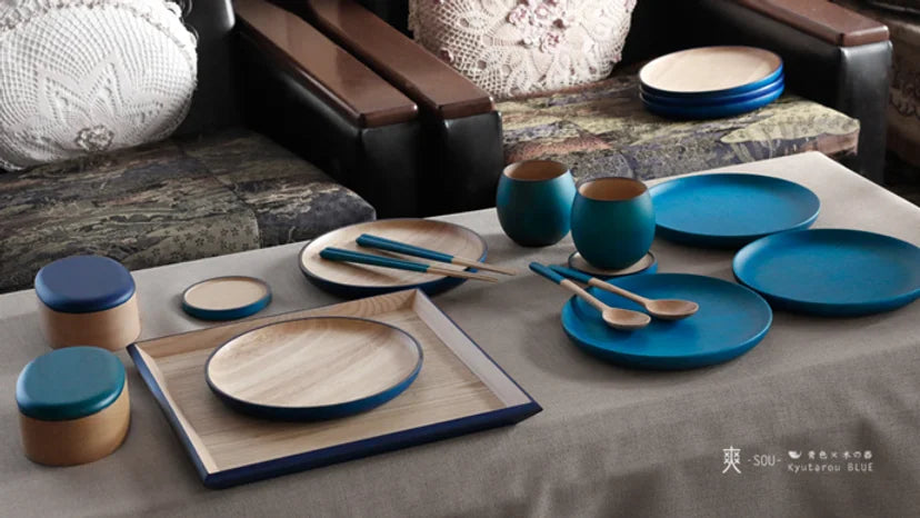 Blue wooden tableware, KyutarouBLUE series, provides a gastronomic combination of dining and innovation.