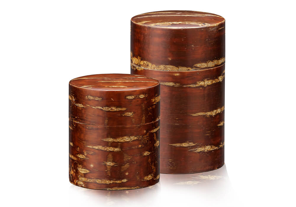 It is widely loved for its beauty and warmth as a natural material, and the one-of-a-kind appearance of the wild cherry tree bark that is used as the material has become a big attraction, and many products such as tea caddies and tea utensils have been produced.