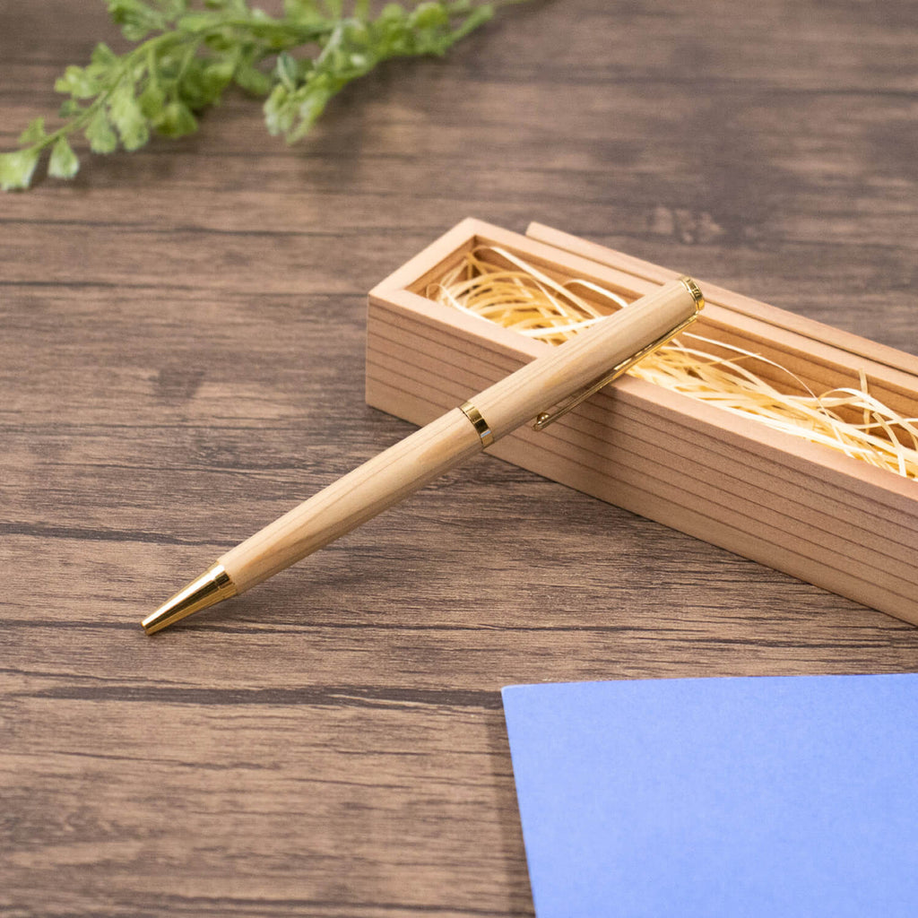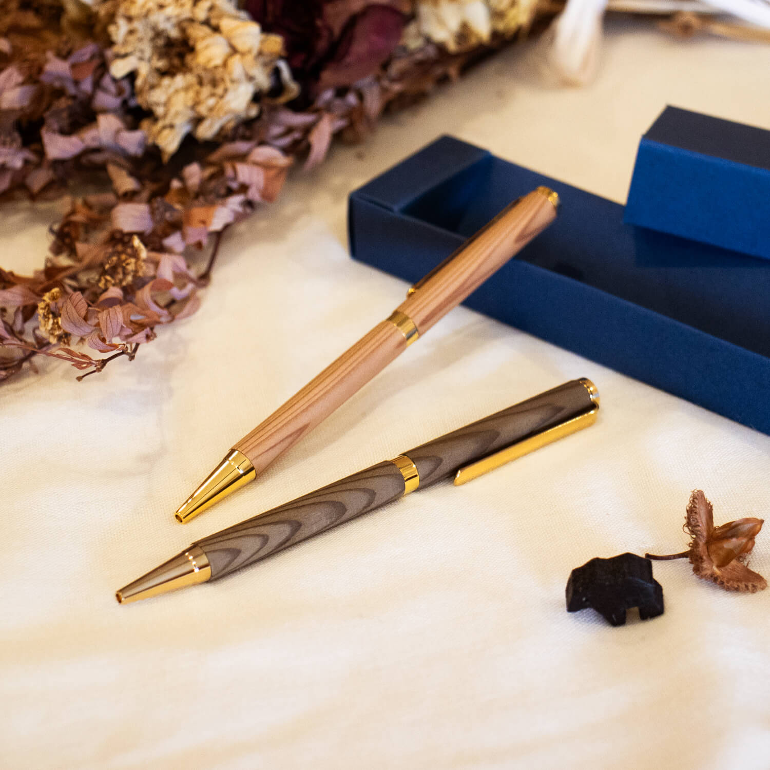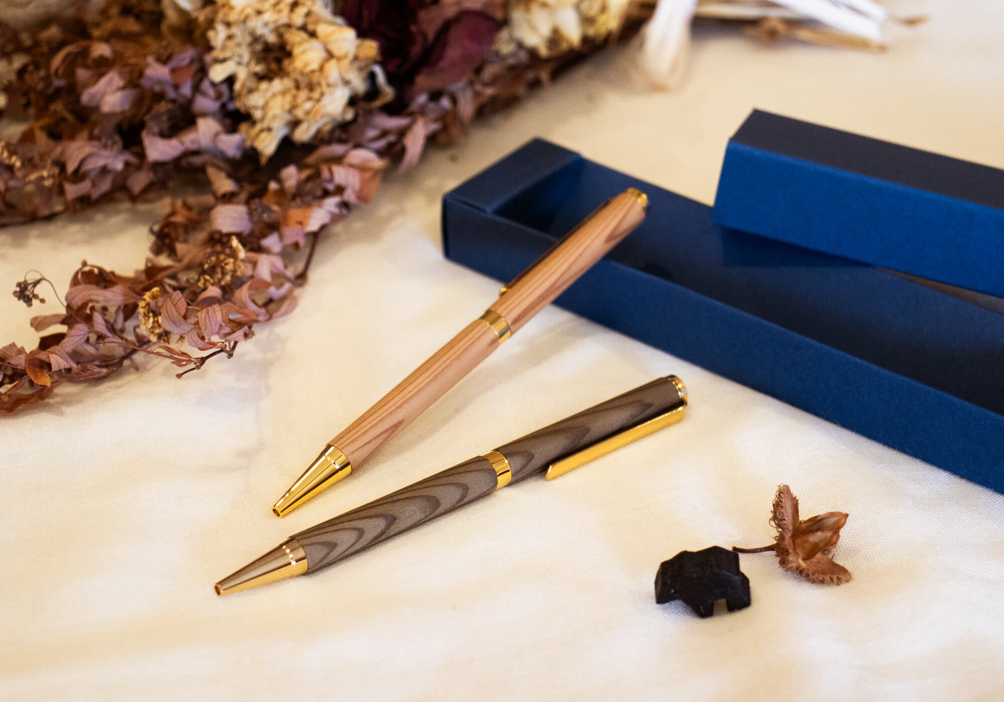 使い続けることで趣が増し、同じ木目のものがない世界に一つだけの木製ボールペン。