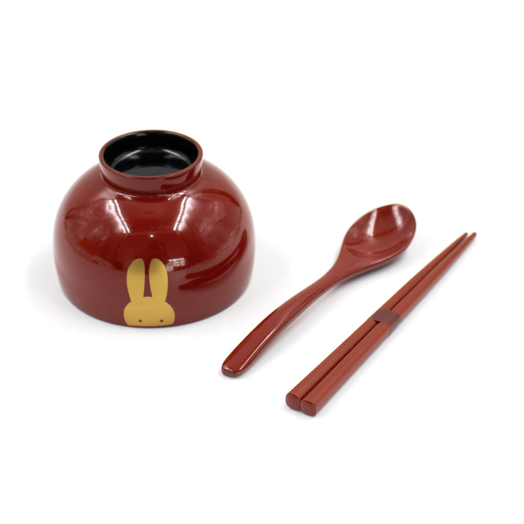 うさぎベビー椀 朱色セット(スプーン・箸)