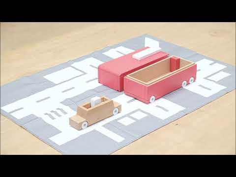 消防車、救急車、バス、積み木を入れ替えるとタクシー、パトカーにも。 車遊びを通して、数やサイズを学ぶことはもちろん、パズルのように 収納を楽しむことができます。 出す→遊ぶ→おかたづけを楽しく学ぶことのできるおもちゃです。