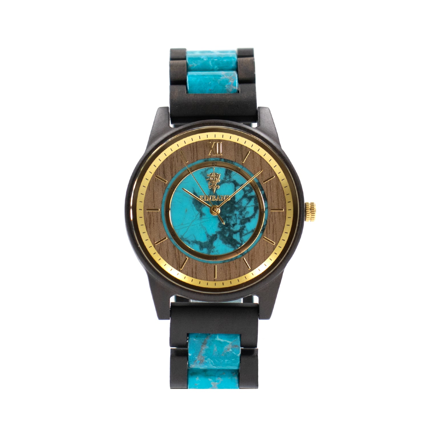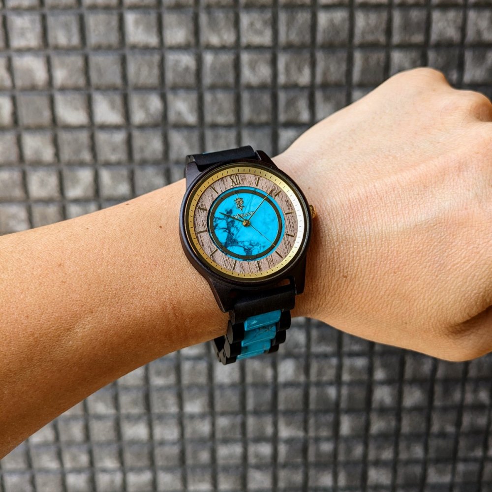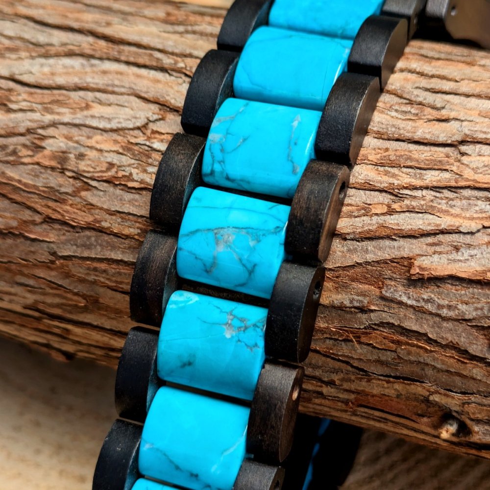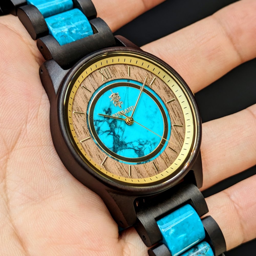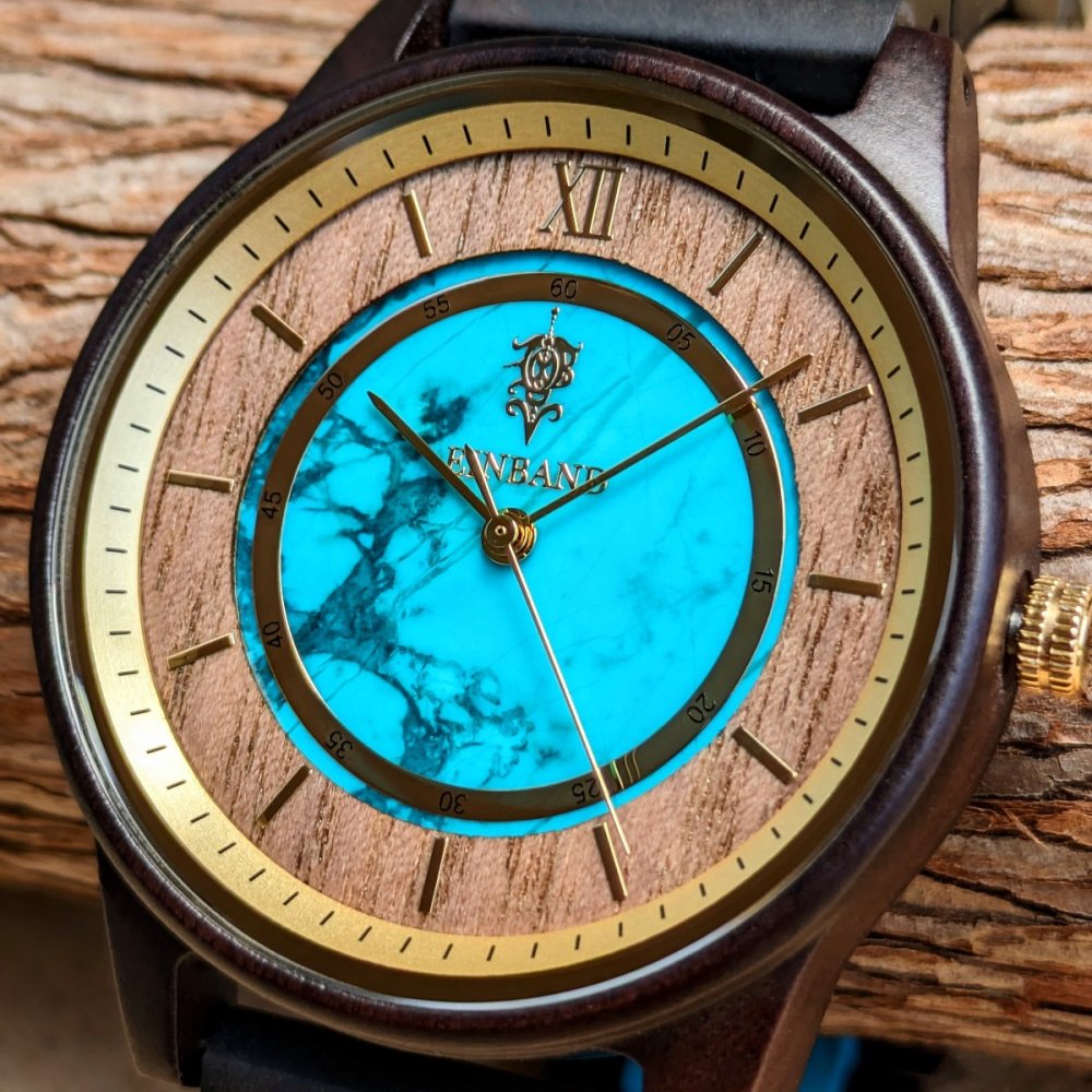 ターコイズとサンダルウッドの木製腕時計 40mm 男性向け Anmut
