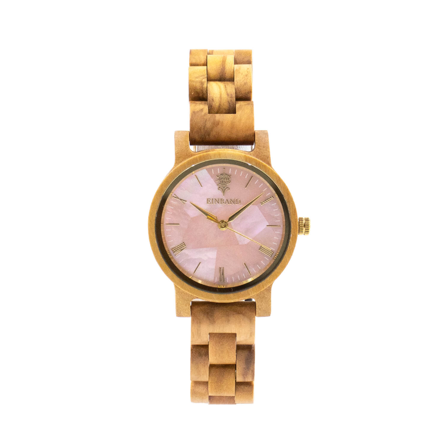ピンクマザーオブパールとオリーブの木製腕時計 32mm 女性向け Reise